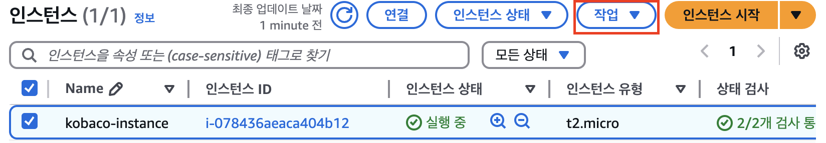 1. AWS 콘솔 > EC2 > 인스턴스 시작