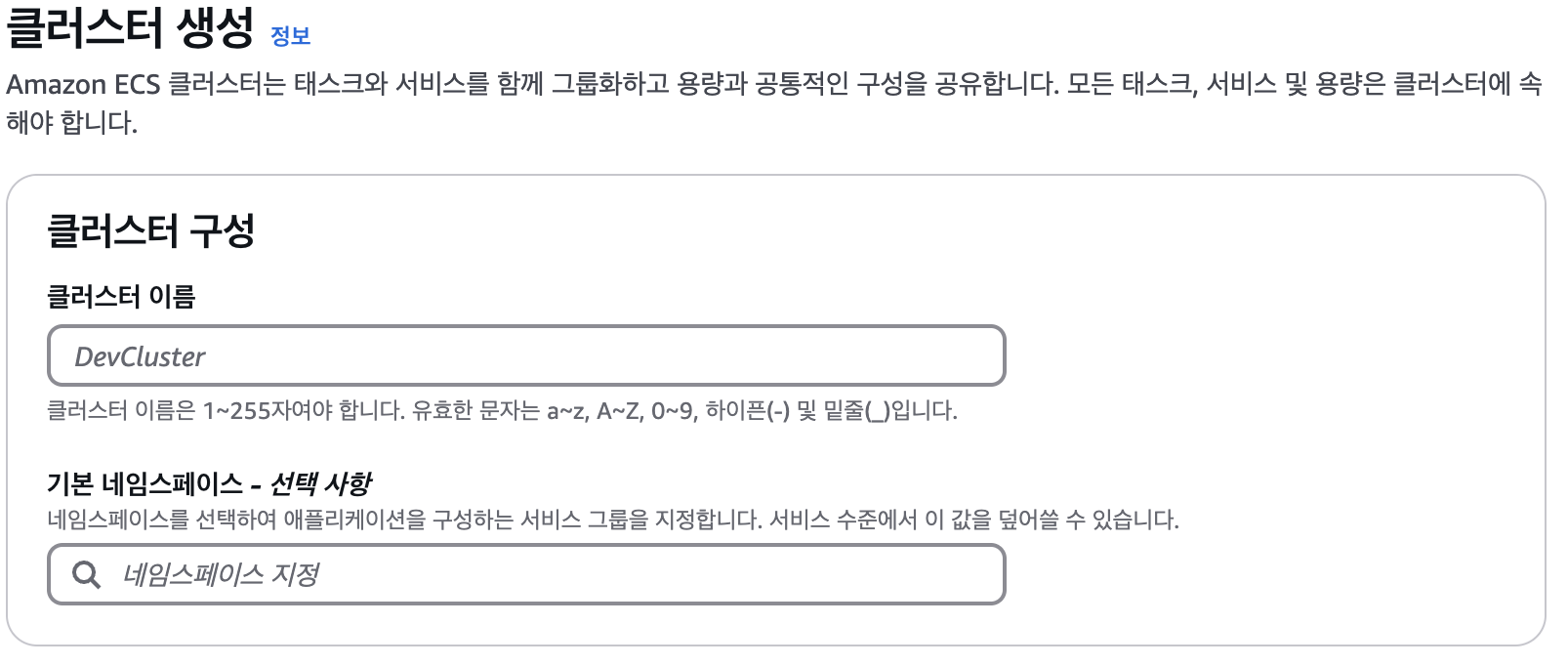 2. ECS 클러스터 생성