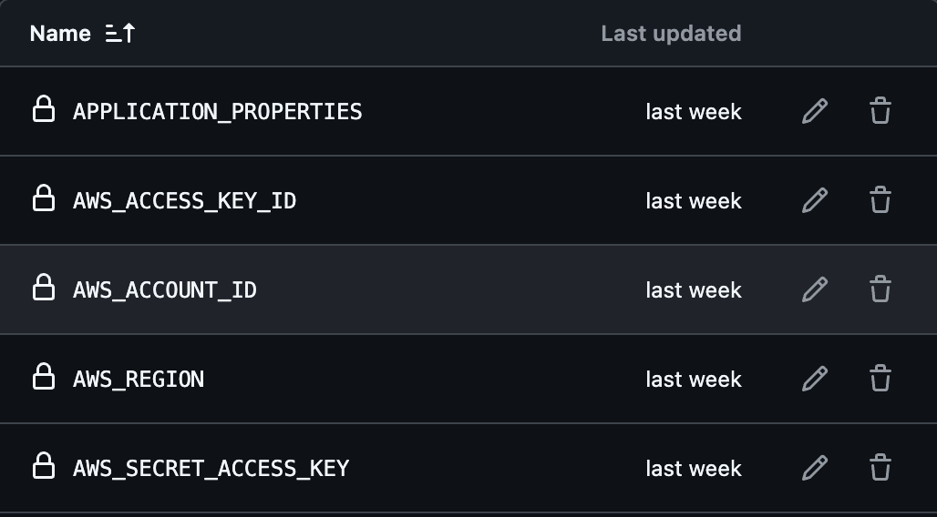 - AWS_ACCESS_KEY_ID : 깃헙 액션에서 권한을 주기 위해 사용하는 IAM 의 시크릿 키
