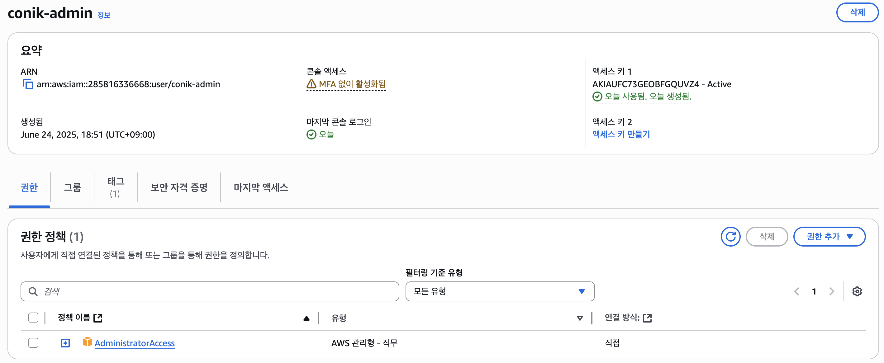 1. AWS IAM USER 생성