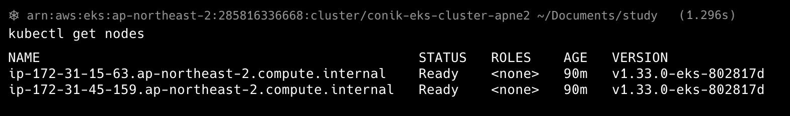 aws eks update-kubeconfig --region ap-northeast-2 --name test_cluster